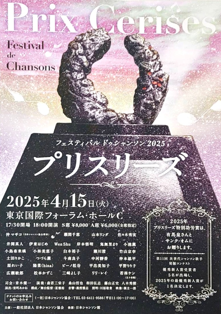 お問合せ:日本シャンソン協会 03-6411-9586(平日10:00〜17:00)